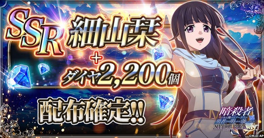 事前登録者数5万人を突破し、全てのユーザー様へ「細山栞(SSR)」と「ダイヤ2,200個」、その他アイテムの配布が確定いたしました。
