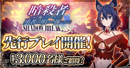 CTW株式会社は、G123の最新ゲーム「暗殺者である俺のステータスが勇者よりも明らかに強いのだが シャドウブレイク(ステつよSB)」にて、抽選で3,000名様を対象とした先行プレイ開催を発表します。