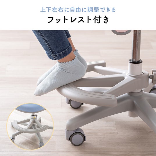 足置きの高さや背もたれの奥行きは成長に応じて調整可能。座面もガス圧昇降でラクに高さを変えられるため、子どもから大人まで長く使用できます。一度の購入で成長段階に合わせた快適な学習環境を実現します。