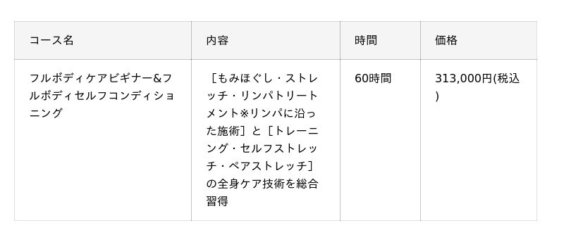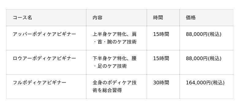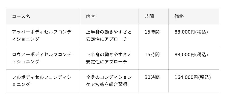日程:2025年10月より開始、講師と調整 ※お申込みから3ヶ月以内に受講場所:カラダファクトリー ※神奈川県内一部店舗での実施(上記担当講師とご相談)