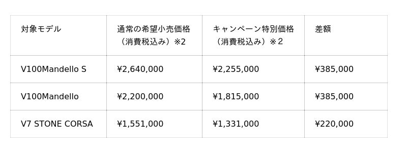 縦置きVツインの楽しさをお得に入手できる在庫限りのキャンペーン