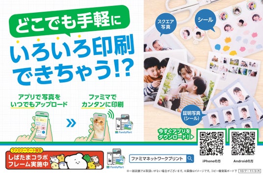 また、証明写真(シール)はコンビニ最安値の200円でご利用いただけます。さらに、400種類ほどだったフレーム・スタンプも1000種類以上に拡充し、人気の分割フレームも8分割までご利用いただけます。人気イラストレーター『しばたま』さんとのコラボレーションフレームもファミリーマート限定で販売を開始するなど、これからも幅広いシーンでお楽しみいただけるプリント体験を提供してまいります。