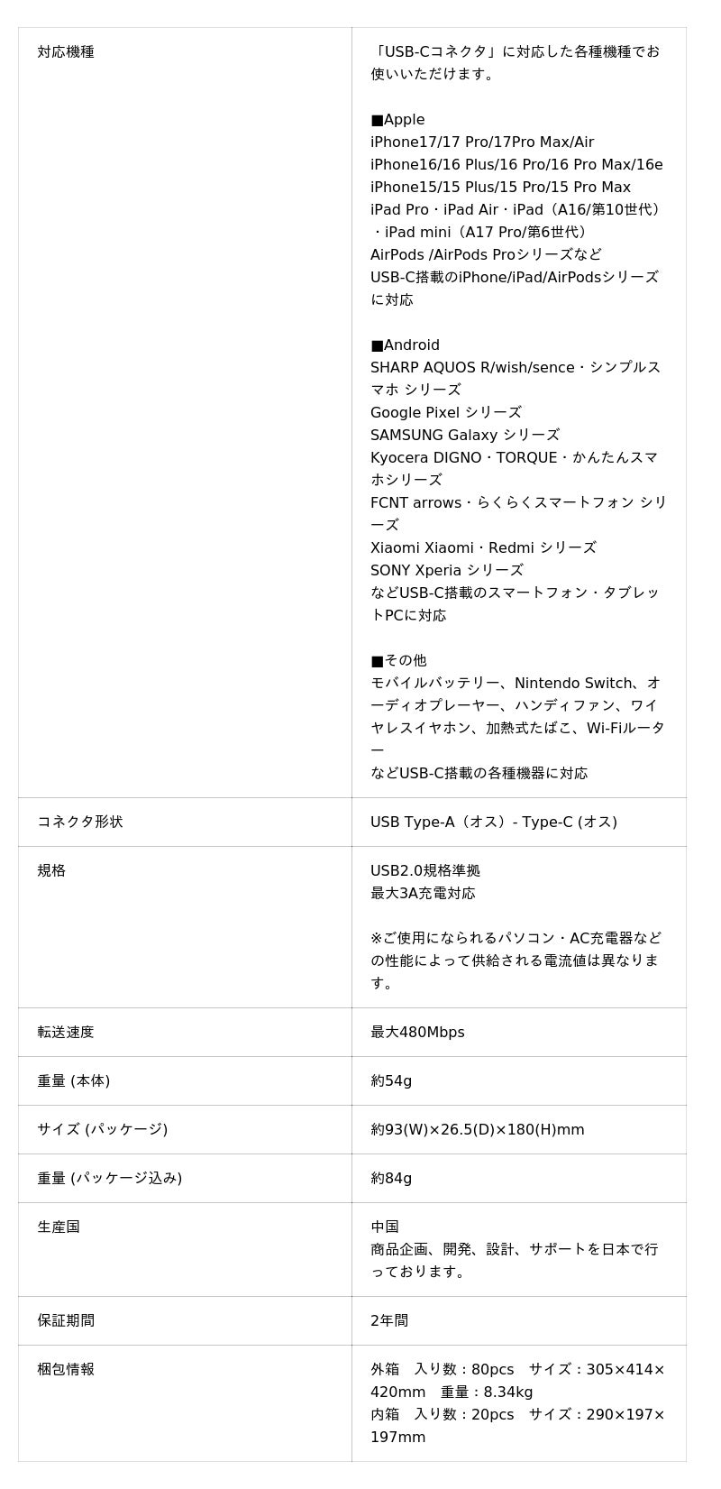 マグネットケーブル グラデーション USB-A to USB-C 1m 磁力でまとまる データ転送 全5色 2年保証 (MOT-MGGAC100)