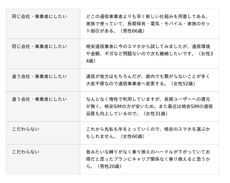 「携帯電話会社・通信事業者にはこだわらない」は14.5%です。