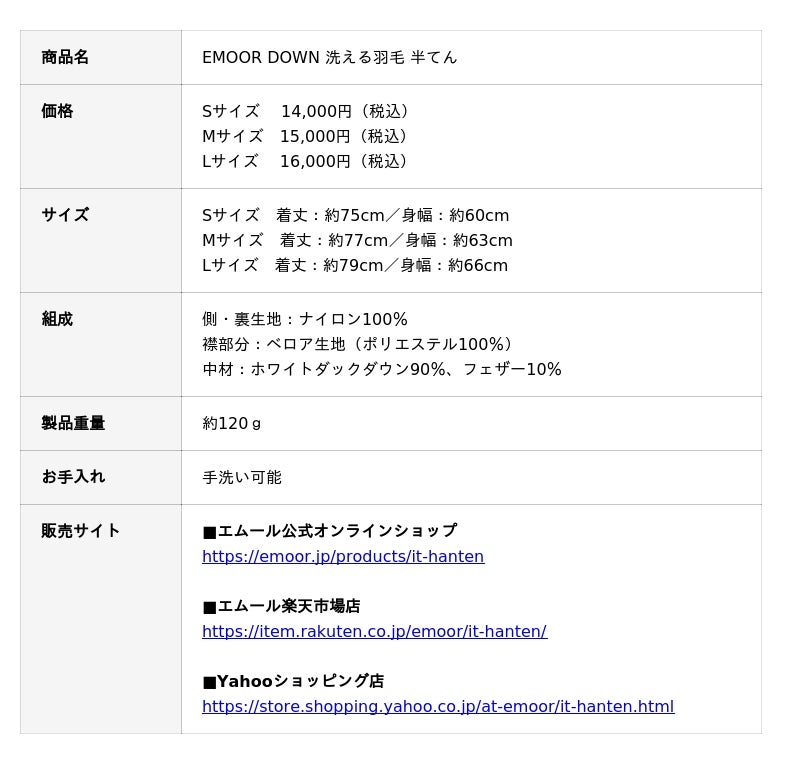 「身体に合った寝る・座る・たたむ」を提供する健康家具ブランドEMOORを展開する株式会社エムール(東京都立川市:代表取締役 高橋 幸司/以下エムール)は、2025年10月7日より、「EMOOR DOWN 洗える羽毛 半てん」の販売を開始しました。