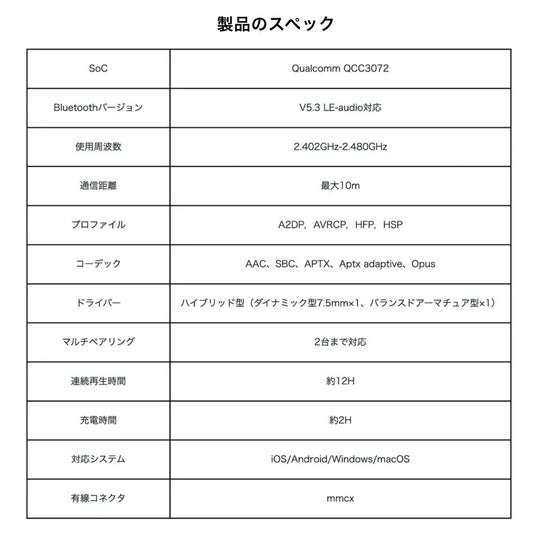 装着形式:カナル型(MMCX対応)