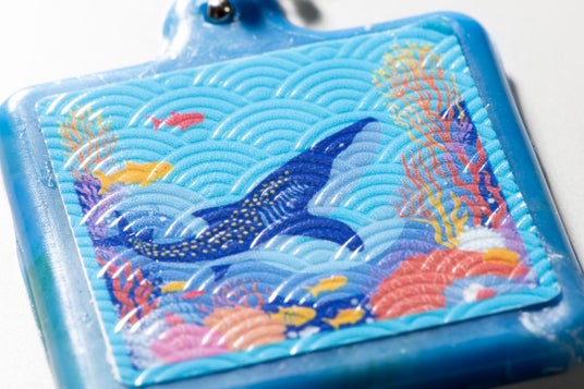 本プロジェクトの目的は沖縄県の美しい自然を守ることで、沖縄県内外の方々に資源循環や環境保護の大切さを楽しみながら学んでいただく企画です。廃棄プラスチック製品から製造した無地キーホルダーをカプセルトイの景品として活用し、売上金の一部を「さくら教室(旧 名護こども食堂)」に寄付します。弊社は沖縄高専の学生の取組みに賛同し、キーホルダーに貼る10種類のシールラベルを寄贈しました。デザインは沖縄県のシンボルをモチーフにした5種類と、沖縄高専の本科・専攻科をイメージした5種類で、デザイン性を高めるため国内で数社が製造可能なデジタルバーニッシュ加工を施しています。また、資源循環にこだわり、シールラベルの素材も回収されたペットボトルを再生したものを使用しました。