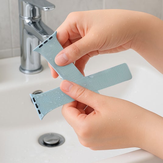 レザー調のマグネティックシリコンバンド上品なシュリンクレザーの質感を表現した、マグネットで留められるシリコンバンドです。全面シリコンで着け心地がよく、着け外しも簡単にできます。