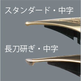 ペンを寝かせると太い線、立てると細い線が書けるという特長があり、トメ、ハネ、ハライなどが多い漢字を最も美しく筆記することができます。また、同じ字幅のスタンダードペン先と比べると太い線を書くことができます。筆圧をかけなくても滑らかな書き心地を実感できるペン先です。