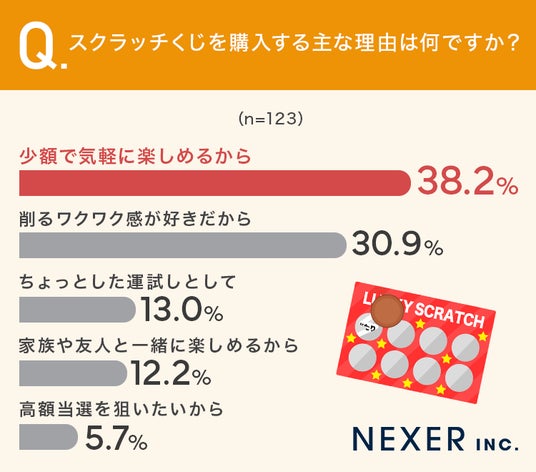 ■38.2%が、スクラッチくじを購入するのは「少額で気軽に楽しめるから」と回答