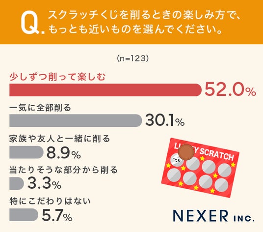 ■52%が、スクラッチくじを「少しずつ削って楽しむ」と回答
