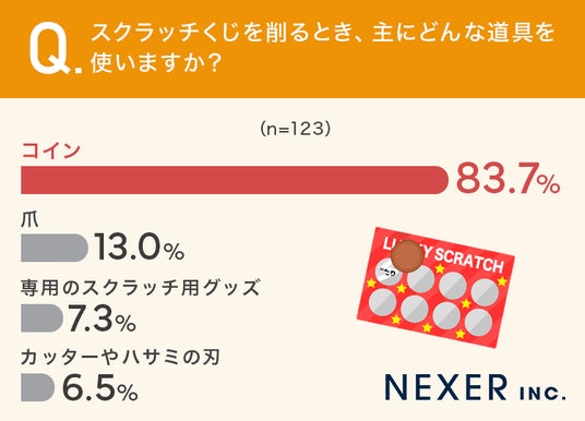 ワクワクできるスクラッチくじを削るときに、主にどんな道具を使うかを複数回答で聞いてみました。