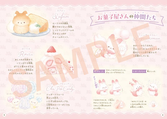 また、「シュガーココムー」やその仲間たち「スフォン」「ローリス」など、ふわふわでかわいいキャラクターたちのイラストもたくさん載っています。