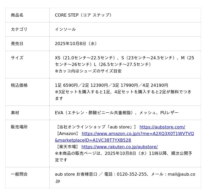 コンディションを整える商品やサービスを開発・販売するAuB(オーブ)(株)(東京、鈴木啓太代表取締役)は、足の指が地面から浮いている「浮き指」を解消する高機能インソール「CORE STEP(コアステップ)」を新発売します。