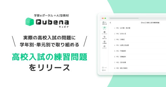 学習eポータル+AI型教材「キュビナ」を開発・提供する株式会社COMPASS(本社:東京都文京区、代表取締役:佐藤 潤、以下 COMPASS)はこのたび、キュビナの新コンテンツとして実際の高校入試の問題で子どもたち自身が自律的に応用問題演習に取り組むことができる「高校入試の練習問題」をリリースしましたことをご報告いたします。本コンテンツの対象教科は数学で、学年別・単元別の目次で実際の高校入試の問題を搭載し、知識の活用力・思考力を高めるトレーニングとして日々の学習に活用いただけます。