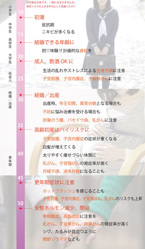 女性特有の病気は、歳を重ねるごとにその発生リスクが高くなりますが、若い20代、30代のうちからも発生リスクはあります。