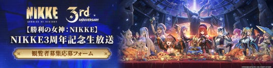 3周年記念生放送「栄光を祈る前夜祭」では、番組の現地観覧者を募集中です。日頃から『勝利の女神:NIKKE』を支えてくださる指揮官の皆さまに、番組の熱気を間近で体感していただける特別なチャンスとなっています。今回の生放送は初めての二部構成になり、ゲーム内情報以外、様々なコーナーが用意されており、貴重な瞬間をリアルに味わうことができます。番組を一緒に盛り上げてくださる方のご応募を心よりお待ちしております。