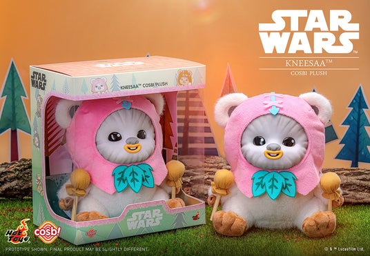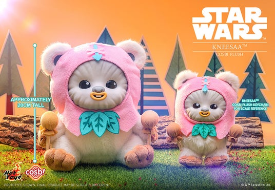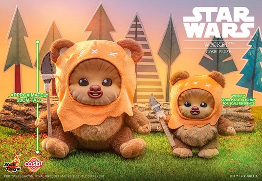 シンプルで愛らしいフォルムと集めやすいサイズが特徴的なデフォルメフィギュア「コスビ」シリーズのデザインをモチーフに、1980年代後半に放送されたアニメ『イウォーク物語』に登場するウィケットとニーサをぬいぐるみ化!