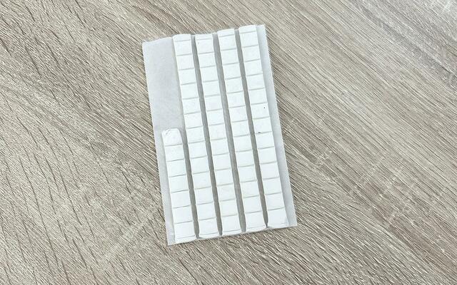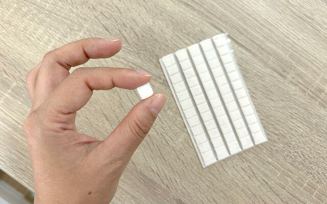 使い方は超カンタン。指に少し取って丸めたら4つにちぎって、貼りたいものの裏にくっつけるだけ!