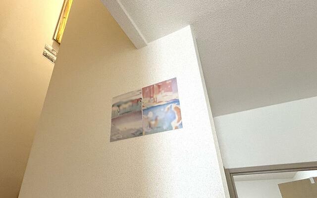 貼り方のセンスについてはご容赦いただきたいのですが(苦笑)、ひっつき虫なら、ポストカードを傷つけることなく壁にしっかりと固定できました。