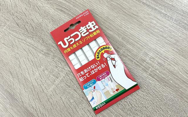 マグネットと違って貼る場所の選択肢も多く、見た目もすっきりしていてなかなかよいです。短期間なら一度使ったひっつき虫をまた使えるのも、貧乏性にはうれしい。