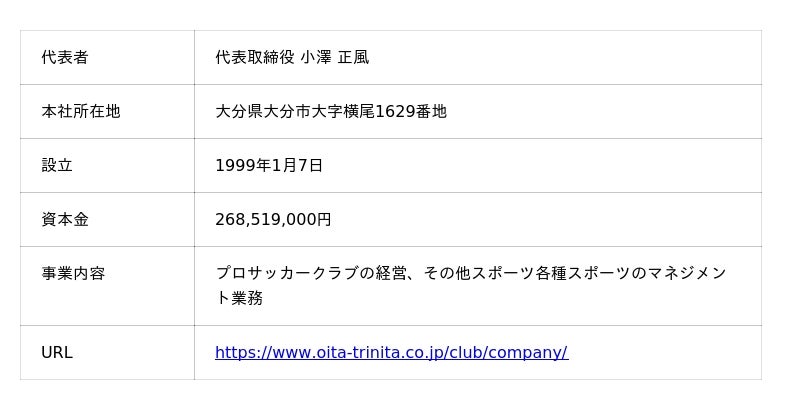 【株式会社大分フットボールクラブ 会社概要】