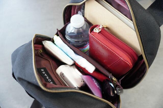 フロント部分にはオープンポケットがついています。チケットやパンフレットなど旅先で必要な紙類の保管に便利ですね。