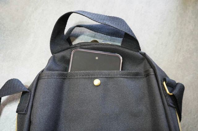 裏側にはスナップボタン付きのポケットがあります。サッと取り出したいスマホを入れておくのがおすすめです。