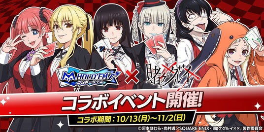 今回は、「m HOLD’EM」にアニメ『賭ケグルイ××』の人気キャラクター、「蛇喰夢子」 、「早乙女芽亜里」 、「夢見弖ユメミ」 、「桃喰綺羅莉」 、「黄泉月るな」 、「生志摩妄」が復刻して登場!