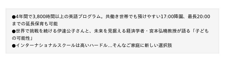 4. インターナショナルスクールと異なり、日本語と英語による教育で両言語を自然に習得できるカリキュラム。