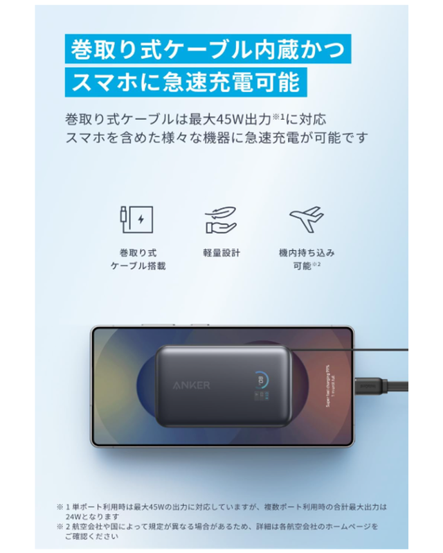 9月10日に発売したばかりの「Anker Nano Power Bank(10000mAh, 45W, 巻取り式 USB-Cケーブル)」は、巻取り式ケーブル搭載かつスマートフォンに急速充電可能なモバイルバッテリーです。今なら17%オフの5,790円で販売中。