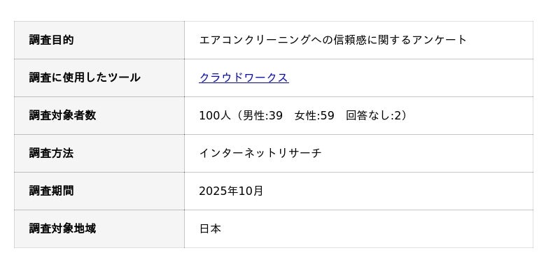 エアコンクリーニングへの信頼感に関するアンケート調査の概要
