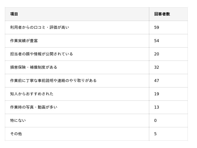エアコンクリーニング業者選びで、信頼できると感じたポイントはどこですか?(複数回答可能)