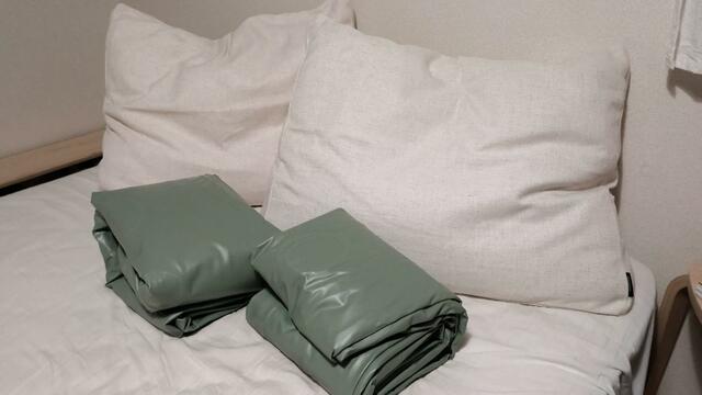 また、膨らませた状態のエアーベッドは相当軽いため、ベッドに腰掛けたり横になったりするときは、本体が動きやすいです。勢いよく乗ってしまうと、エアーベッドが移動して、窓や壁に激突してしまいそうだったため注意したいと思います。