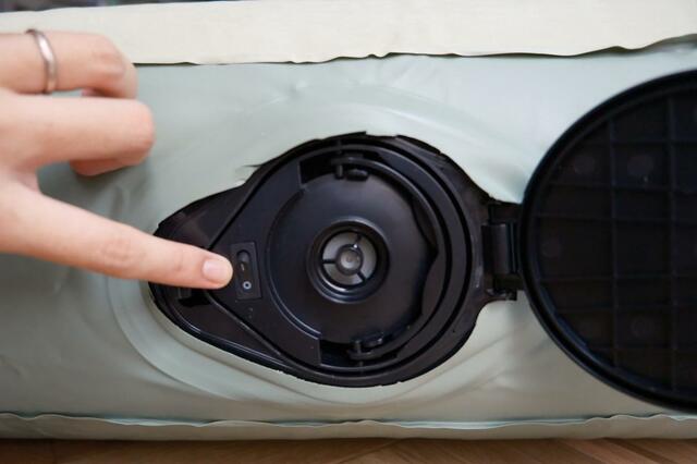USB充電式電動ポンプが付属していて、スイッチをオンにするだけで空気を入れられます。およそ1分半で好みのかたさになりました。