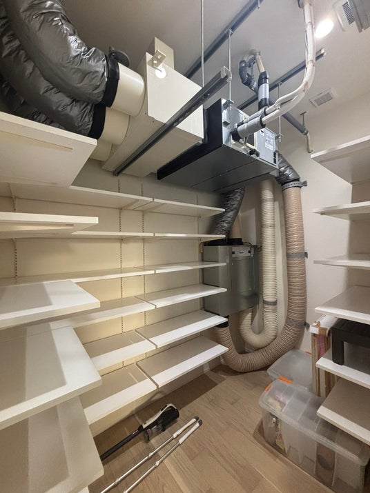 センターダクトは家の中心付近に配置することで床下から1階、2階、小屋裏まで家全体の空気をきれいにすることに成功した。さらにセンターダクトを通じてエアコンの風を送るので、エアコンの不快な音や風を感じることがない、今までにない健康的な快適な住み心地のいい家を実現した。