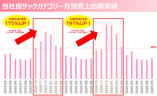 ※出所:ピップ(株)調べ 指サックカテゴリー月別売上出荷実績(売上個数)2023年4月~2025年9月