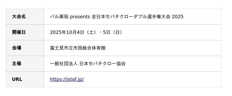 「パル薬局 presents 全日本セパタクローダブル選手権大会 2025」について