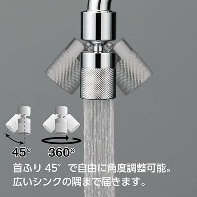 首ふり角度45まで自由に動かせる設計。水の向きを自在に変えられるので、シンクの隅までしっかり水が届くのも◎です。
