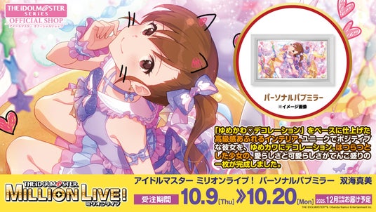 株式会社バンダイナムコエクスペリエンスは、『アイドルマスター ミリオンライブ! パーソナルパブミラー』シリーズの新商品を10月9日(木)に発売します。今回は「双海真美」が登場。同日より株式会社バンダイナムコエンターテインメントが運営するECサイト、「ASOBI STORE」にて期間限定の受注販売を開始します。