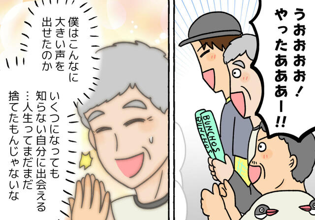 仲間と声を上げて試合を楽しむうちに、直也は久しく忘れていた高揚を取り戻していました。