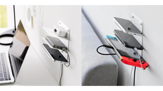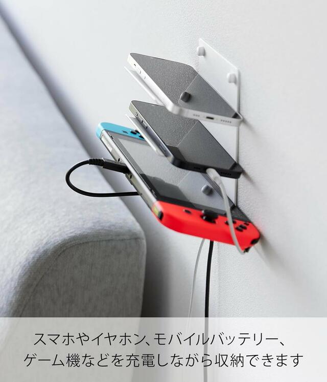 スマホやゲーム機を充電しながら壁に浮かせて収納できる、山崎実業の便利な3段ラックが15%オフとお買い得!