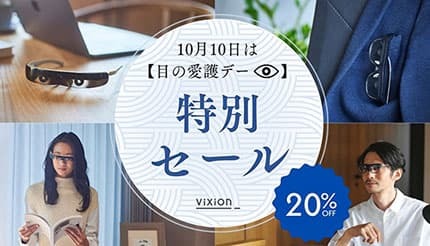 ViXionは10月4~13日の期間、10月10日の「目の愛護デー」にあわせて、同社のオートフォーカスアイウェア「ViXion01S」と「ViXion01」を20%オフで販売する特別セールを、公式オンラインショップ、「ビックカメラ」および同社の公式オンラインショップ、Amazon.co.jpなどで開催している。