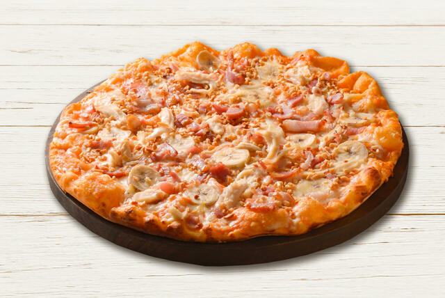 ペパロニにほどよい辛みのハラペーニョ、パイナップルを加え、甘くて辛いクセになる美味しさのピザです。