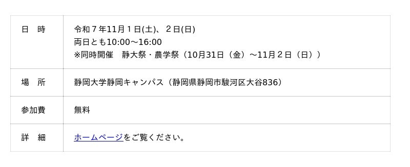 静岡キャンパス(静岡県静岡市)を一般開放するイベントを11月1日(土)・2日(日)に開催します!