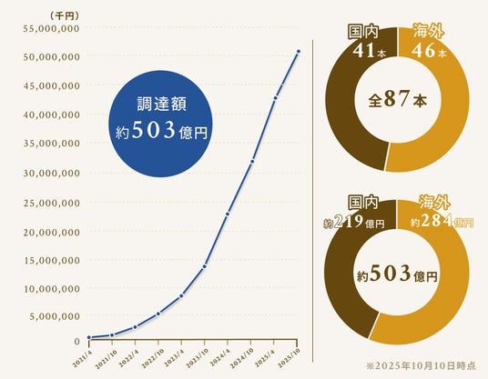 リリースから1年で累計調達額25億円、2年で80億円、4年で400億円を突破し、今回の87号ファンドをもって、累計500億円を超えるに至りました。