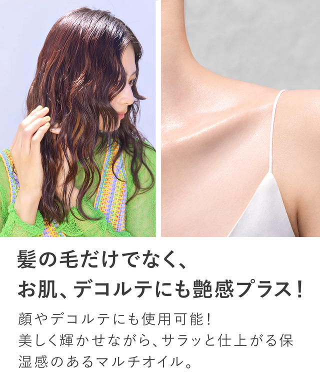 塗布するだけで、艶ラメと微粒子パールが、髪と肌にきらめきをプラス。リッチな輝きをプラスすれば、見た目も気分もアガること間違いなし。
