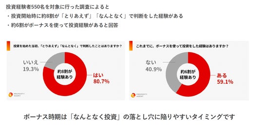 当社が以前実施した調査、「【投資経験者550名に調査】約8割が“なんとなく”で投資をスタート、その結果6割が後悔の経験も。 ― ボーナス時期に高まる投資意識とリスクの実態」では、多くの人が投資に関する十分な知識を持たないまま“なんとなく投資”を始め、結果的に損失を抱えてしまうケースが少なくないことが明らかになりました。