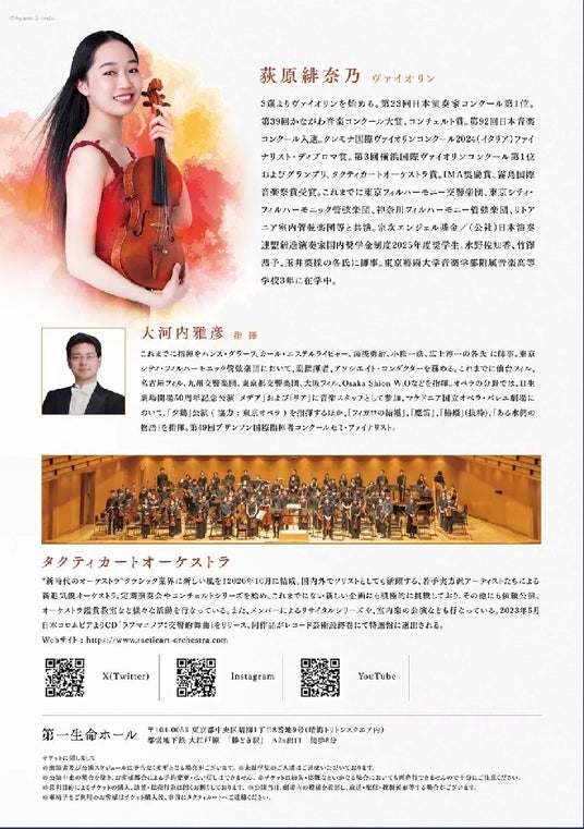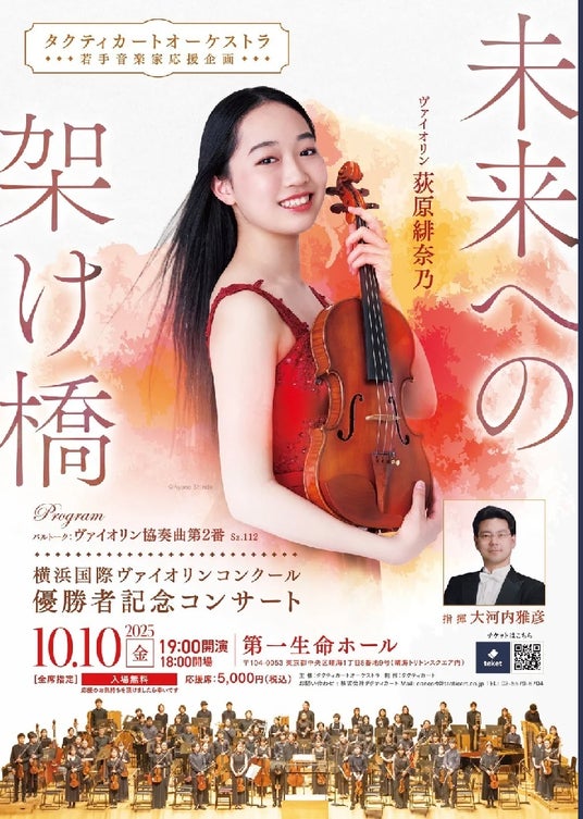 当日は、19:00~タクティカートオーケストラと若手ヴァイオリニストによるコンサートも開催し、どなたでもご入場いただきます。