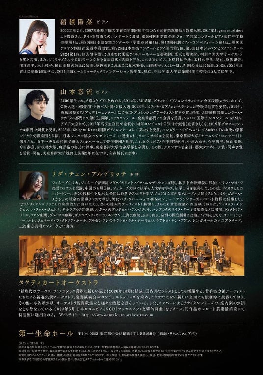 本発表と同時に、リダ・チェン・アルゲリッチ氏が、タクティカートオーケストラの客演指揮者に就任いたします。